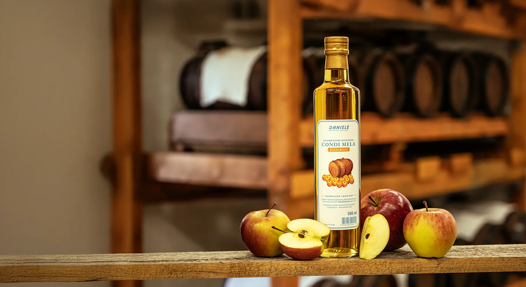 In Eigenherstellung entsteht in Schaffhausen ein Balsamico genau gleich wie in Italien. Der einzige Unterschied ist, dass Most aus den regionalen Blauburgunder- und vom Riesling Silvaner Trauben, oder Apfel verwendet wird.