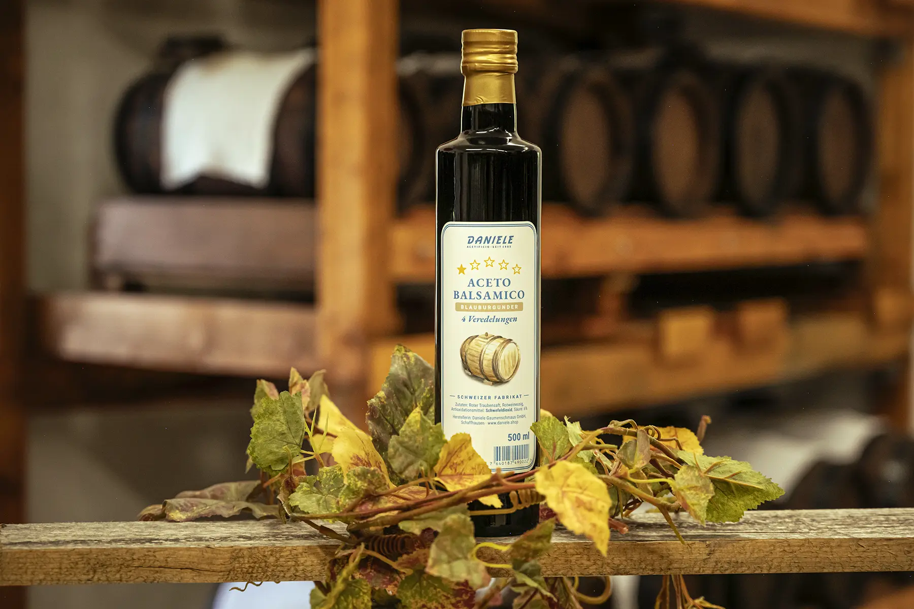 In der ergiebigen Familienflasche jeden Tag im Einsatz: Der 1 Stern Aceto Balsamico von Daniele ist die geschmacksintensive Basis für Ihre Salatdressings.