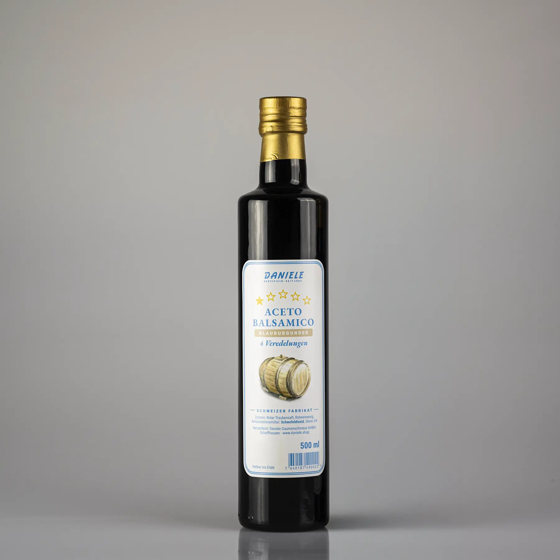 Aromatisieren sie Ihre Salatsauce mit dem Aceto Balsamico Daniele 1-Stern und spüren sie den Unterschied. Der Aceto taktet mit angenehm süssen und säuerlichen Fruchtnoten im Mund auf. Das Geschmacksspektrum erinnert an dunkle Beeren. Der erste – intensive – Eindruck ist mit angenehmen Lageraromen unterlegt, die dem Holzfass entstammen.