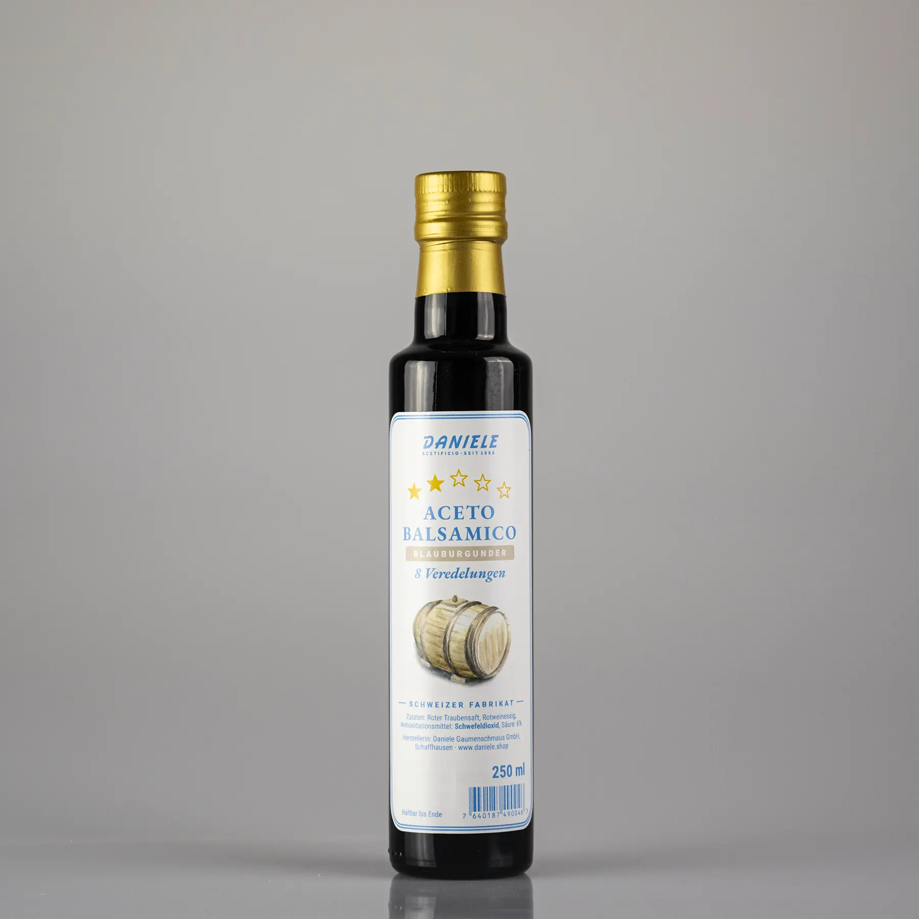 Die unglaubliche Fruchtigkeit ist das charakteristische Merkmal dieser Essigspezialität. Diese erlangt der Balsamico durch die traditionelle Verarbeitung und die Reifung im offenen Eichenfass. Die Blauburgundertraube trägt ihre enorme Kraft in den Gaumen und hinterlässt ein lang anhaltendes Spiel von Frucht und den Lageraromen der Holzfässer.