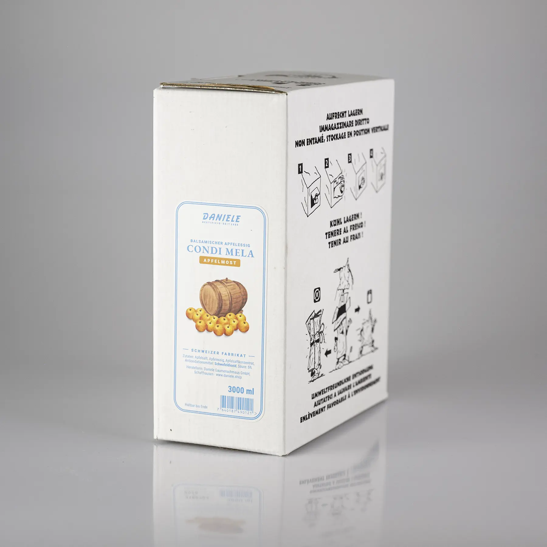 Der äusserst beliebte Condi-Mela ist im Bag in Box erhältlich. Der eignet sich hervorragend, sollten Sie einen erhöhten Bedarf am Balsamischen Apfelessig haben.
